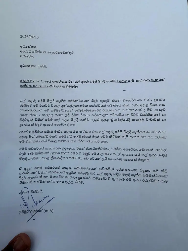 සමගි ජනබලවේග පාර්ලිමේන්තු මන්ත්‍රී මුජිබුර් රහුමාන් මහතා ඇතුළු එම පක්ෂයේ කිහිප දෙනෙකු ඊයේ (13) අපරාධ පරීක්ෂණ දෙපාර්තමේන්තුවට පැමිණිල්ලක් ඉදිරිපත් කළේය.
